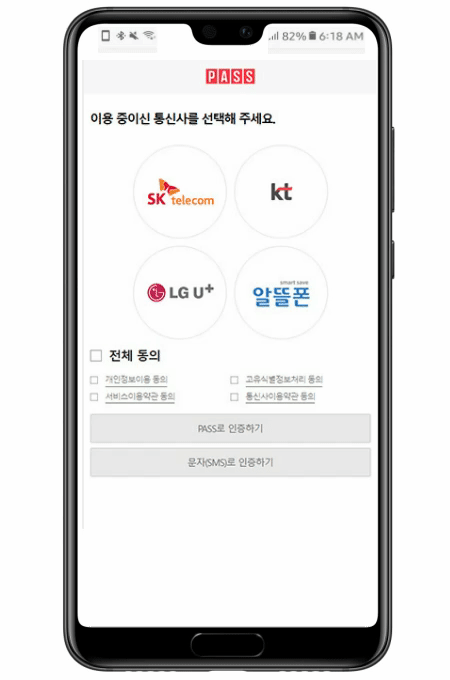 Step3. 본인인증을 위한 Pass 앱 또는 문자로 인증하기를 선택해주세요.