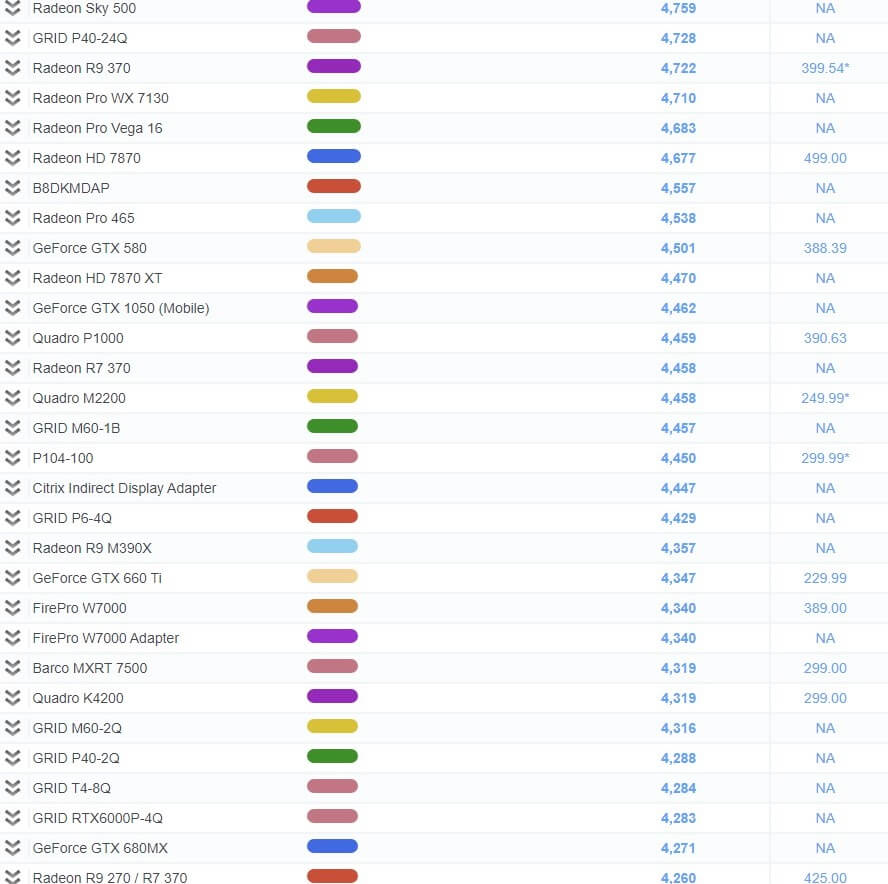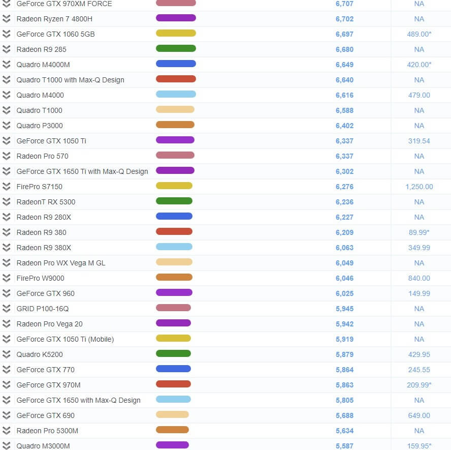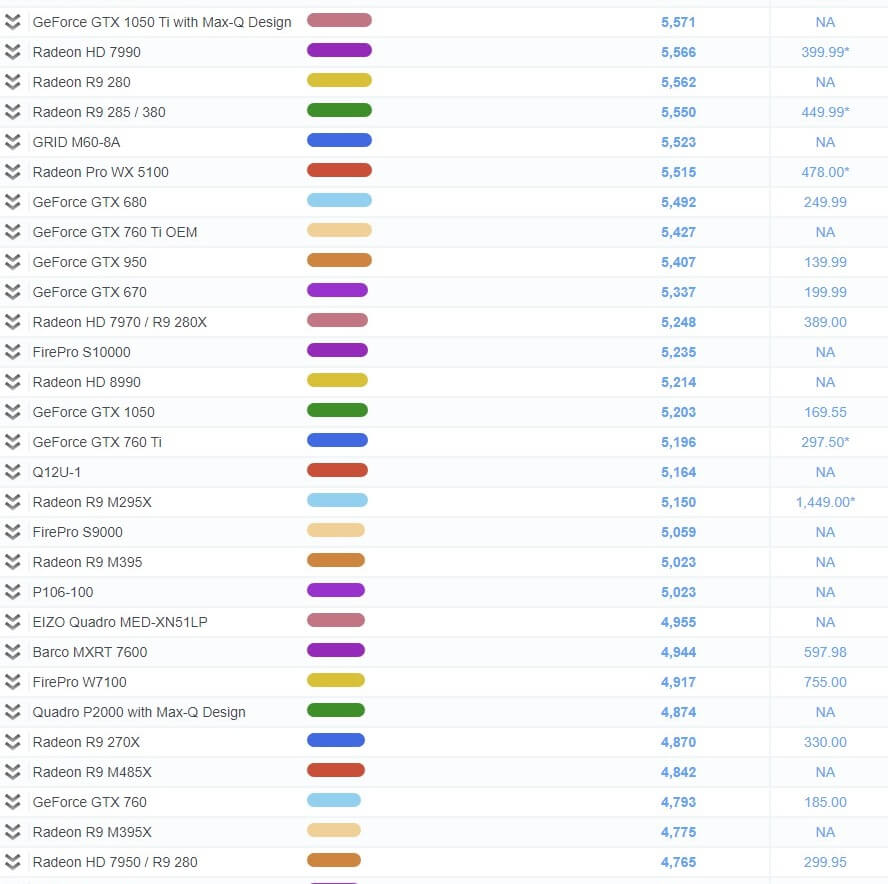 | 49 | GeForce GTX 1070 Ti | 14,259 | 781.90 |