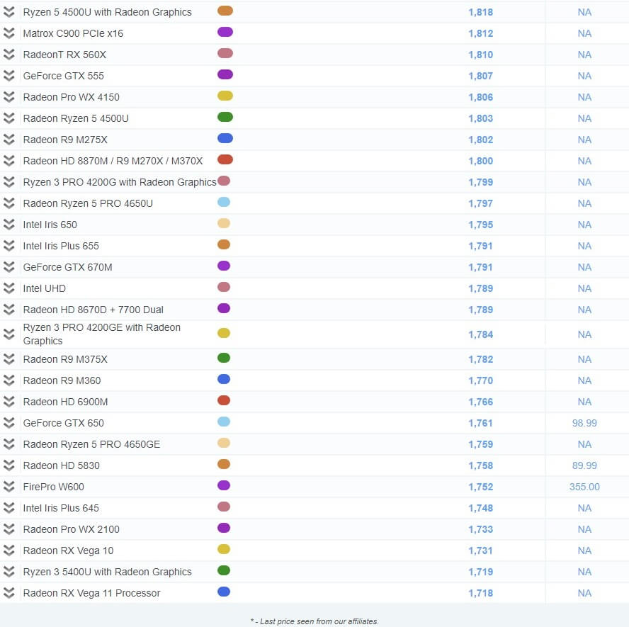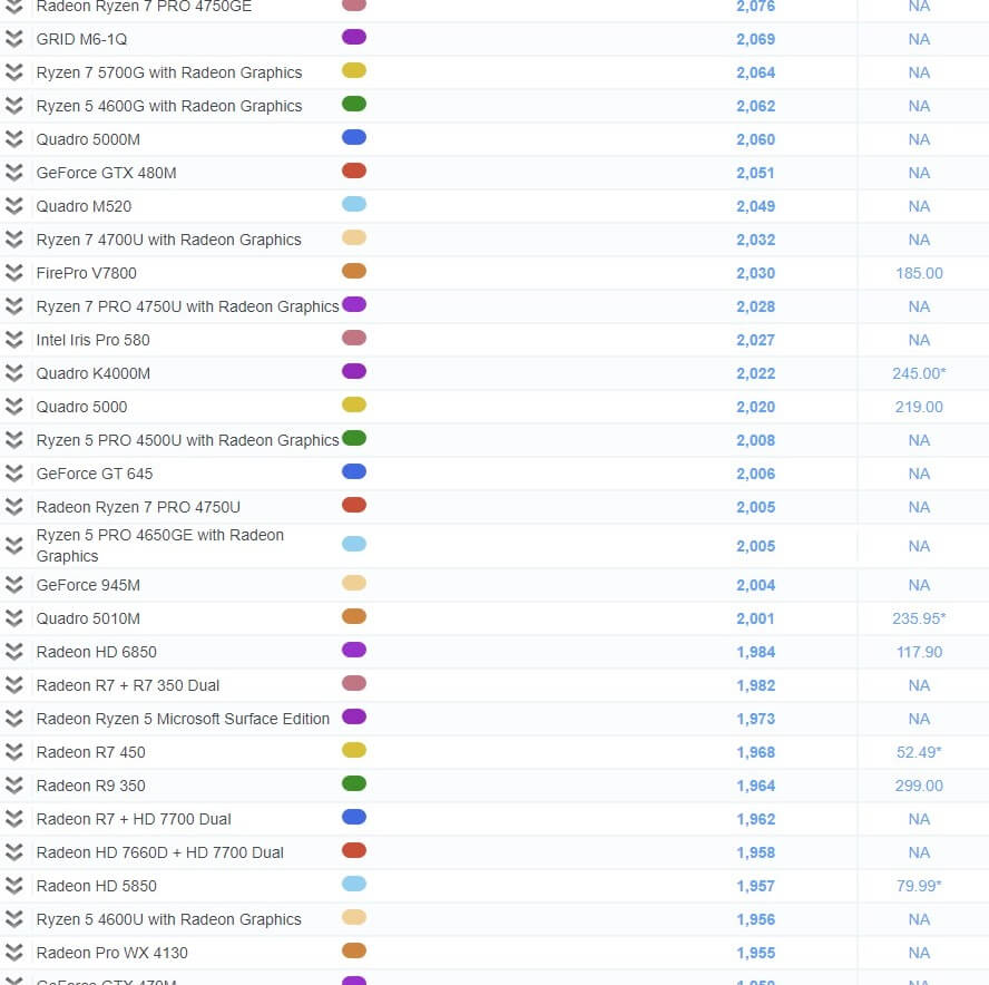 | 535 | Radeon Ryzen 5 PRO 4650U | 1,797 | NA |