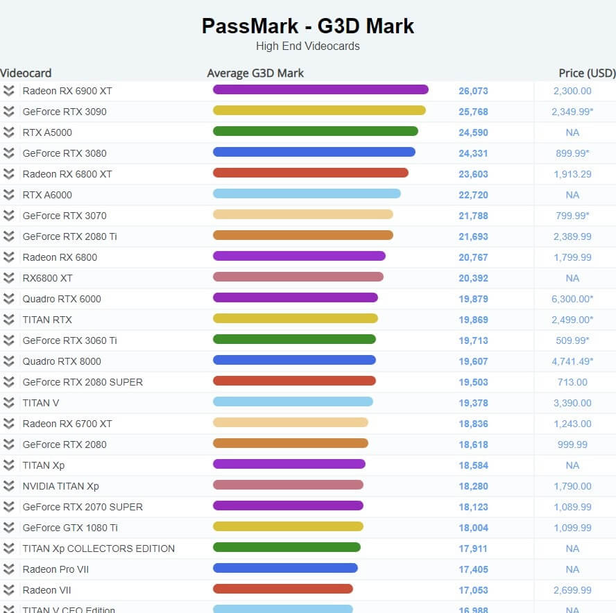 | 1 | Radeon RX 6900 XT | 26,073 | 2,300.00 |