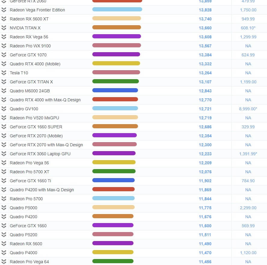 | 55 | GeForce RTX 2060 | 13,859 | 479.99 |