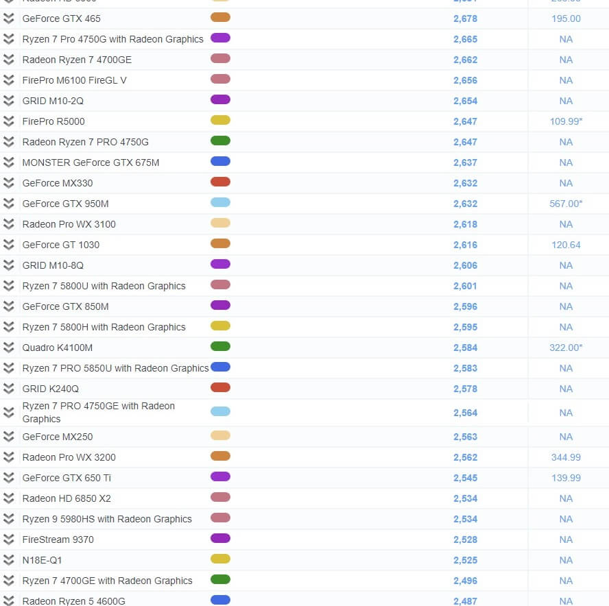 | 37 | GeForce RTX 3080 Laptop GPU | 15,473 | NA |