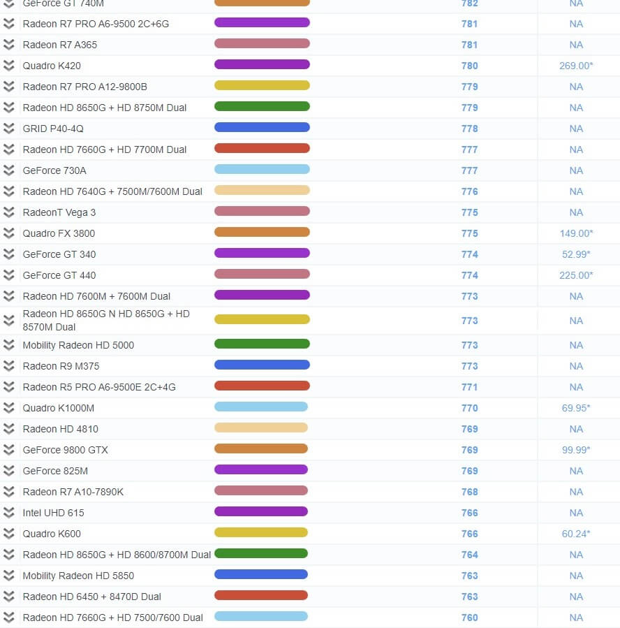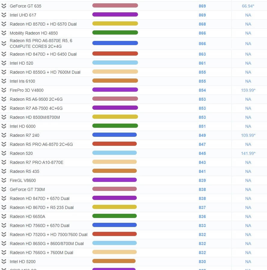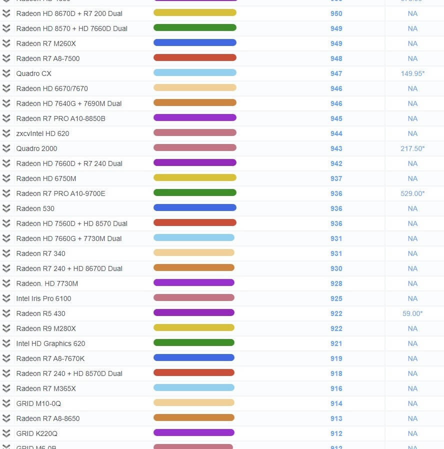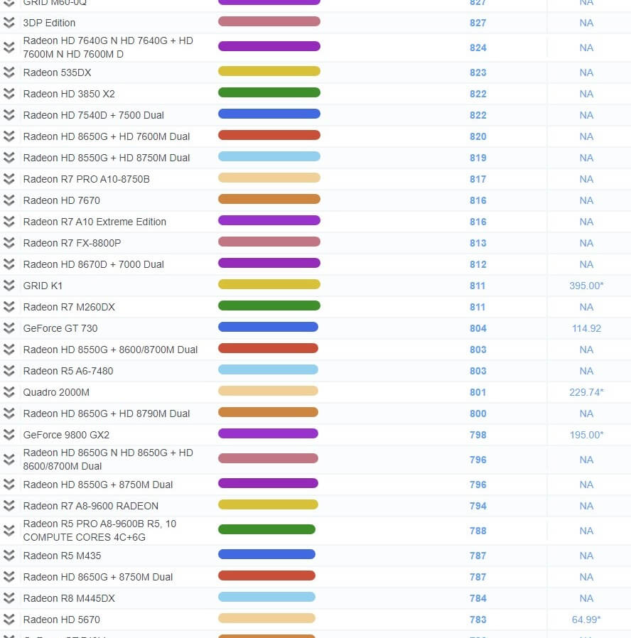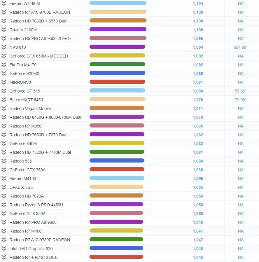 | 503 | Radeon R7 450 | 1,967 | 79.99* |
