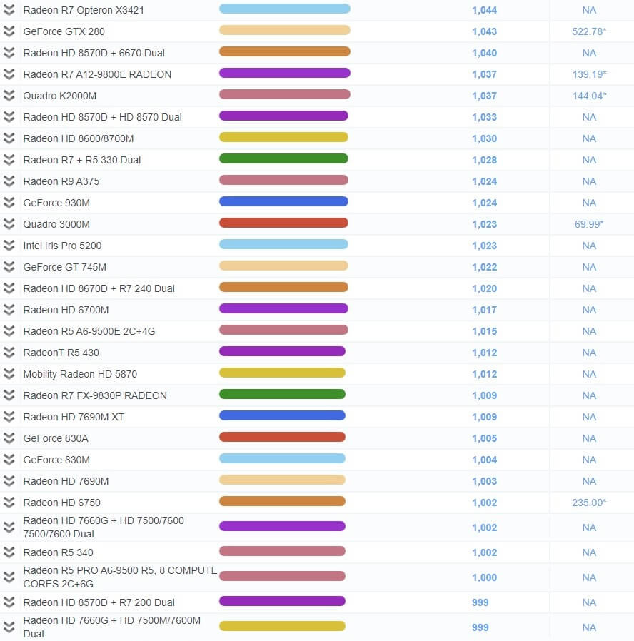 | 491 | Radeon R9 M470 | 2,023 | NA |