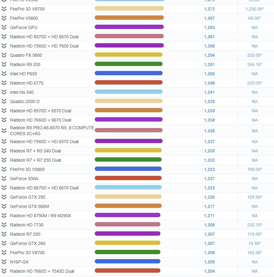 | 534 | FirePro M5100 FireGL V | 1,839 | NA |