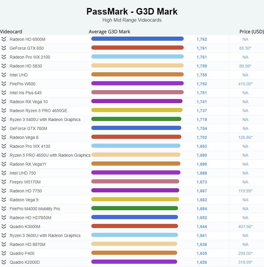 | 552 | Intel Iris 650 | 1,795 | NA |