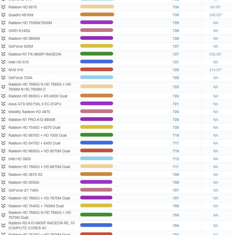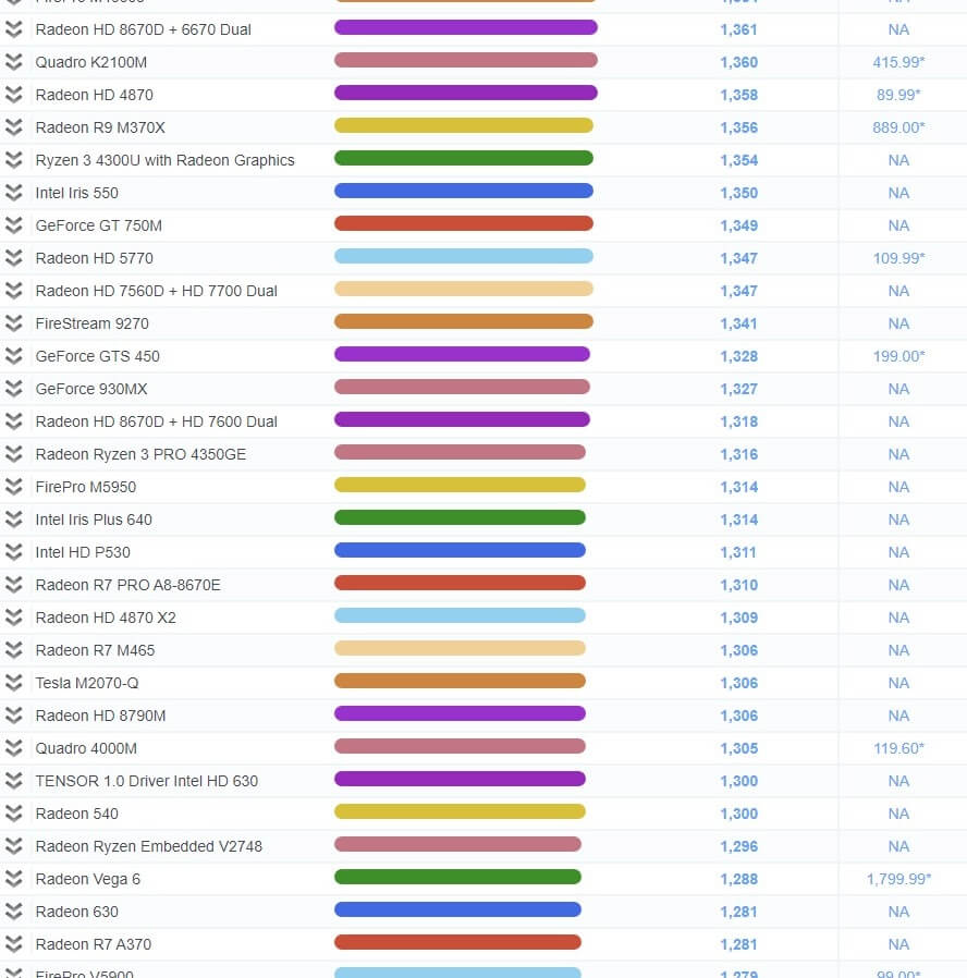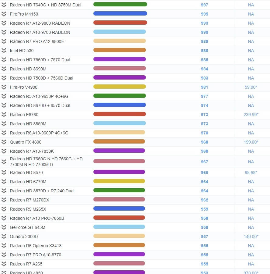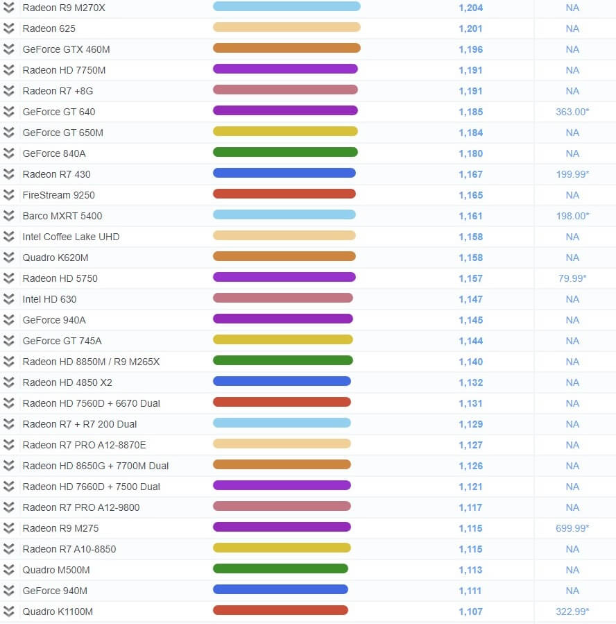 | 503 | Radeon R7 450 | 1,967 | 79.99* |