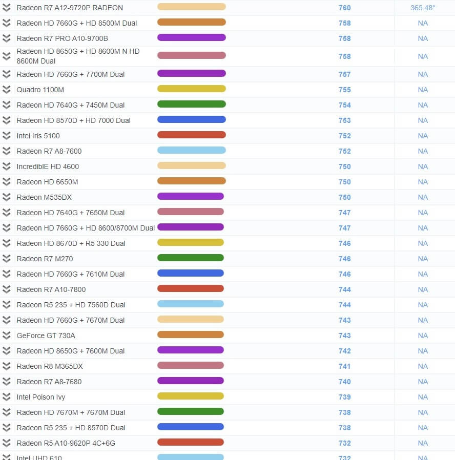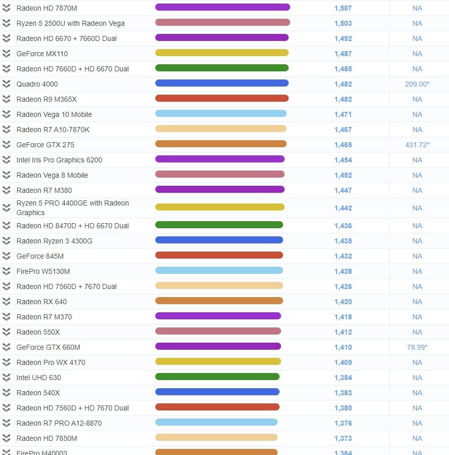 | 491 | Radeon R9 M470 | 2,023 | NA |