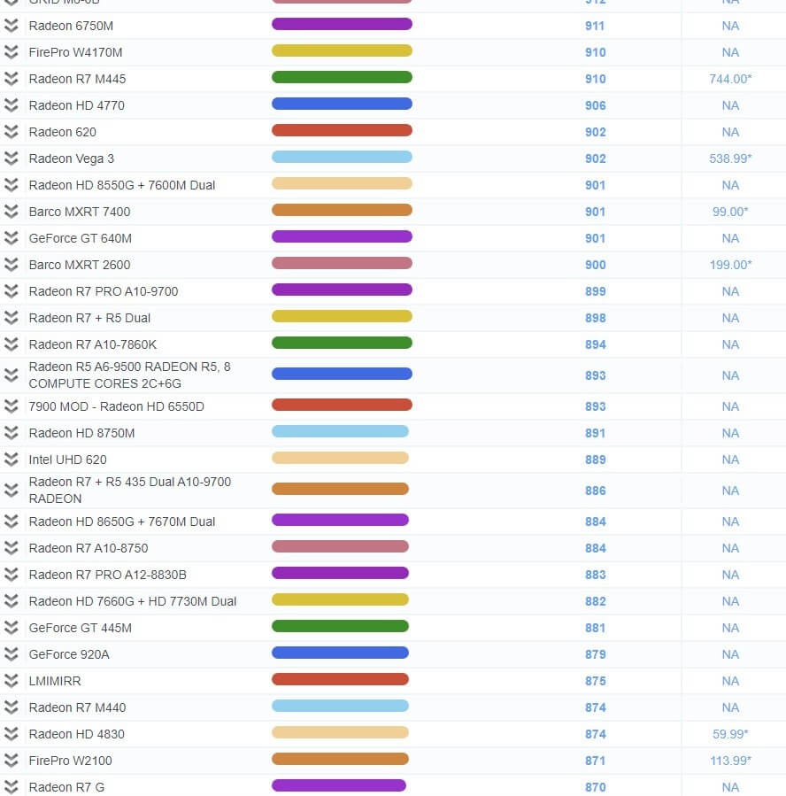 | 523 | Radeon HD 7700-serie | 1,899 | NA |