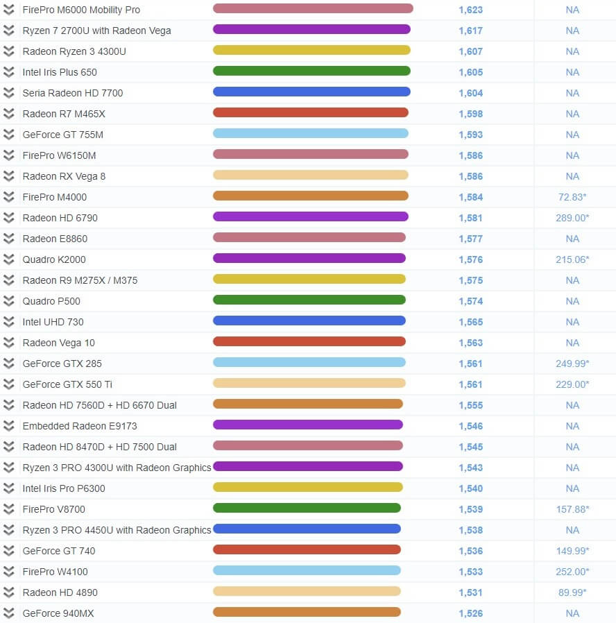| 534 | FirePro M5100 FireGL V | 1,839 | NA |