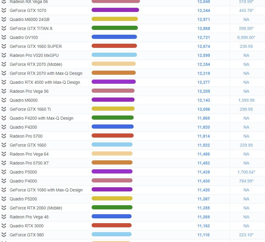 정보 가독성을 위해서 그래픽 카드 성능 순위 비교표를 테이블화 하여 제공합니다. 원하는 모델명 검색을 위해서, Ctrl + F 키 클릭 후 원하는 모델명을 입력해주세요.