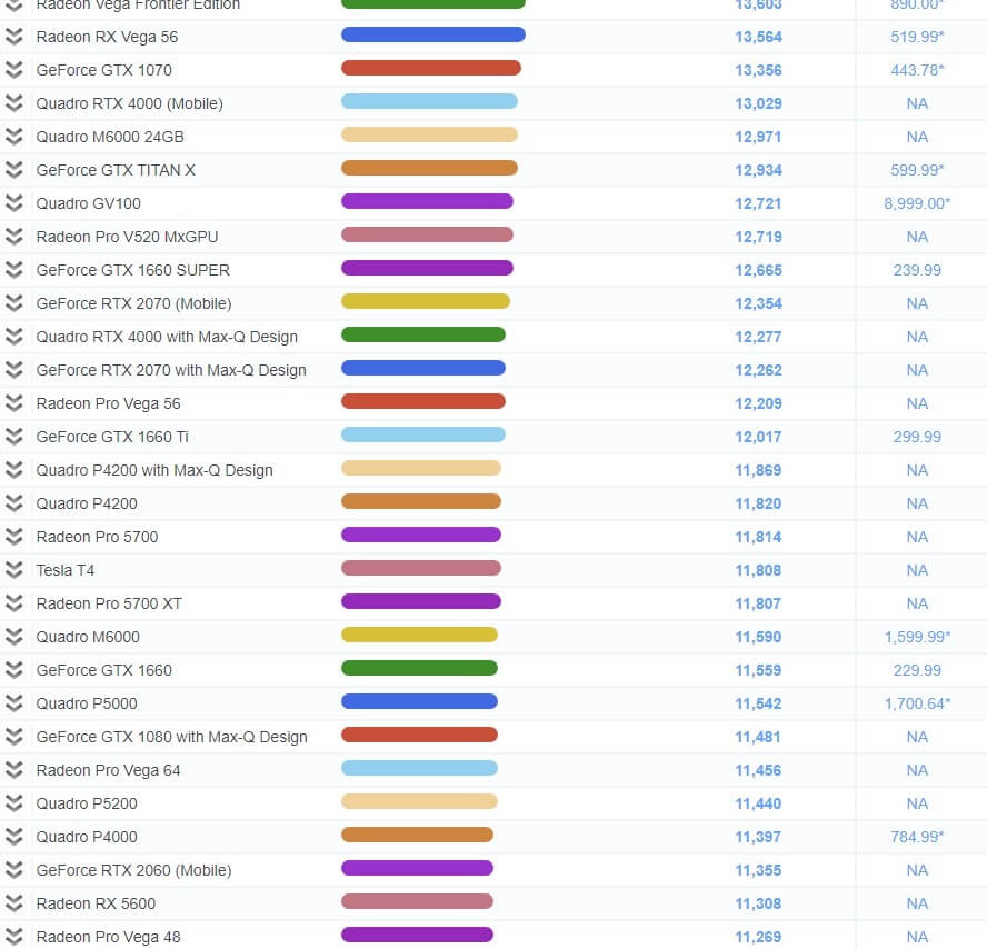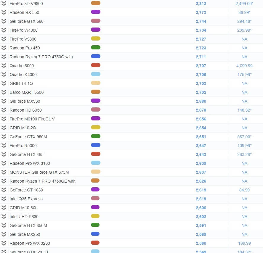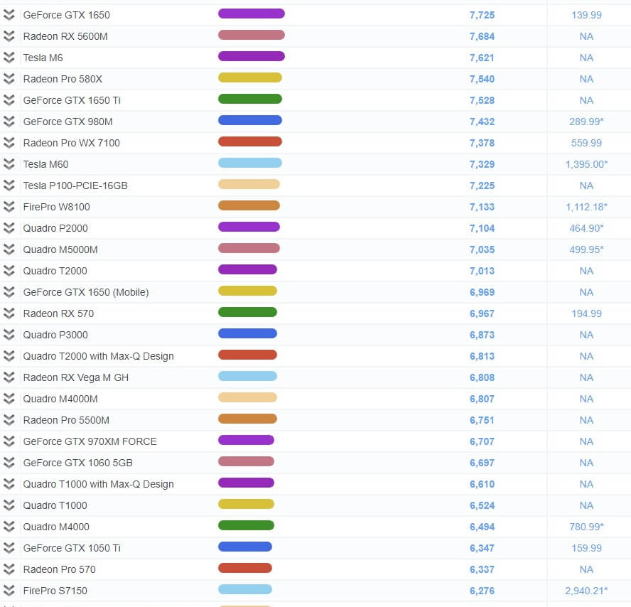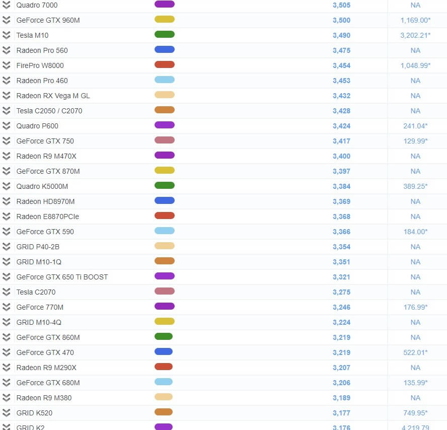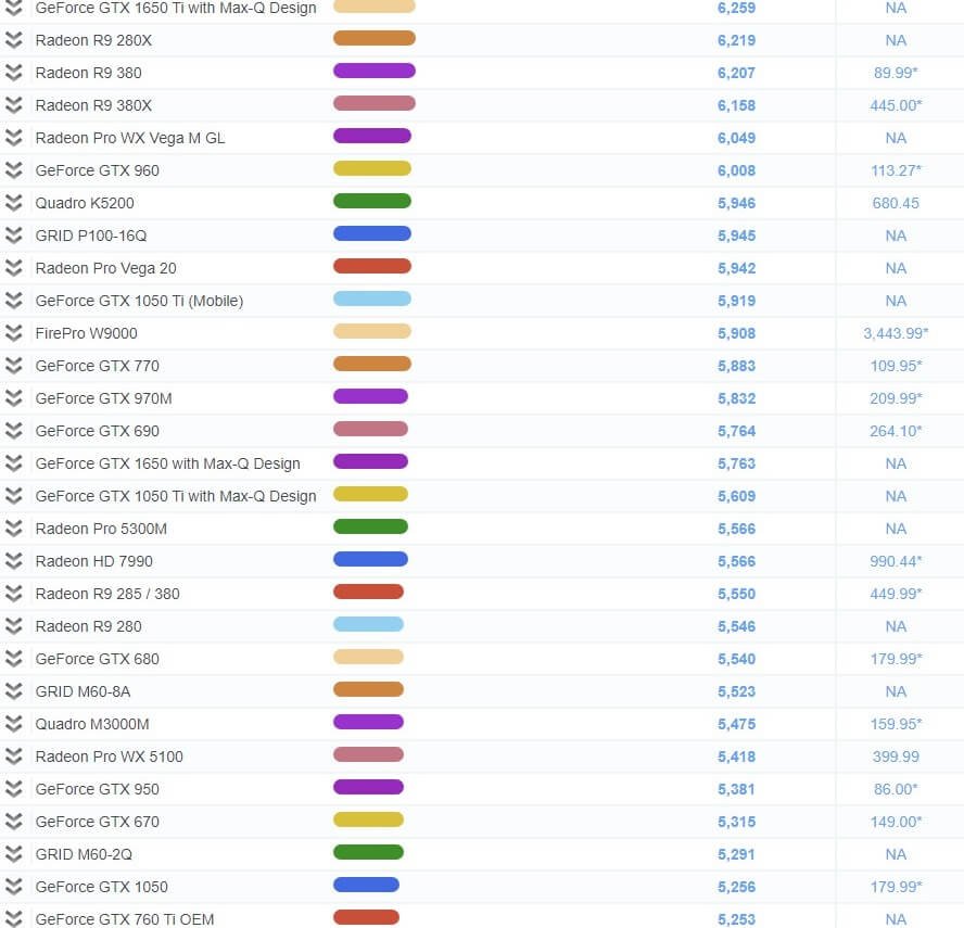 그래픽 카드 성능 순위 비교표