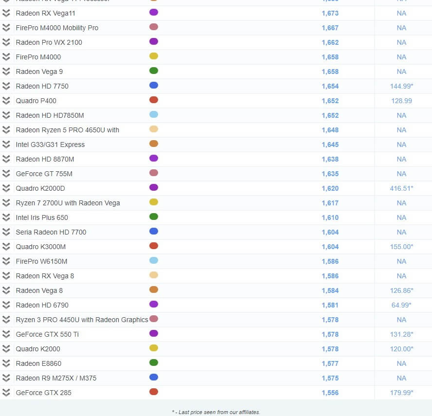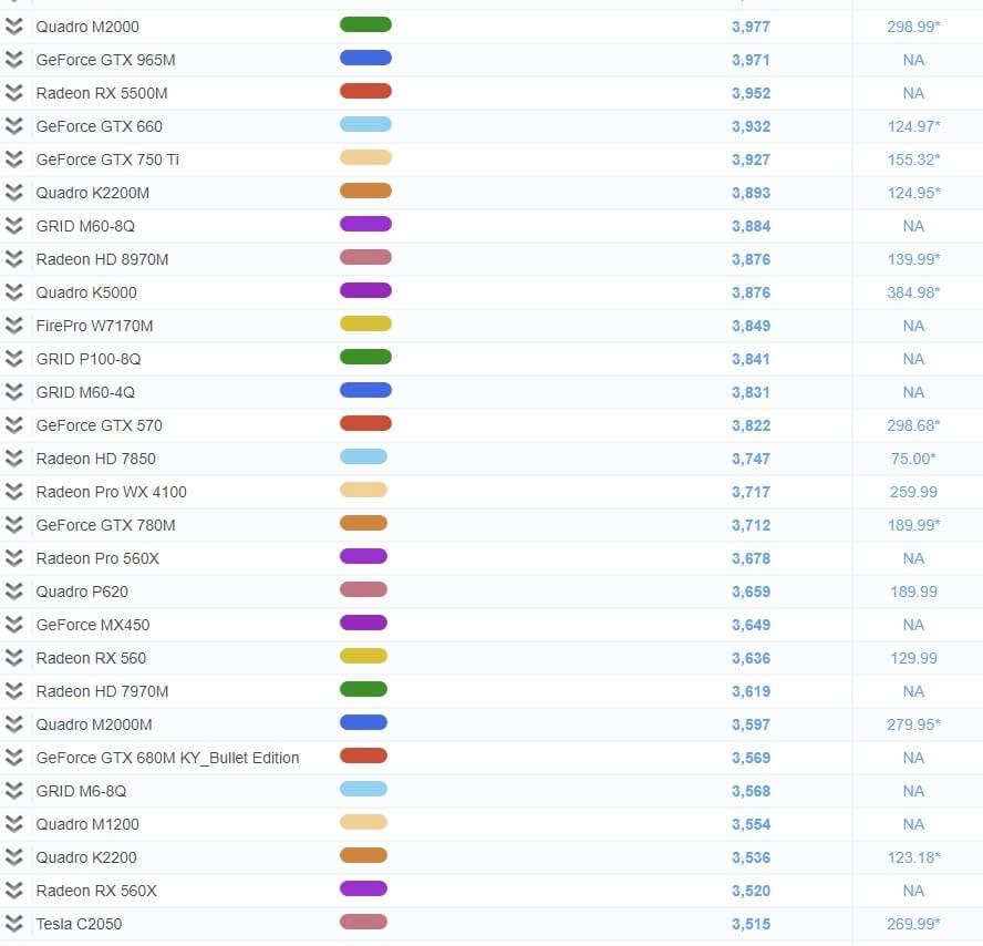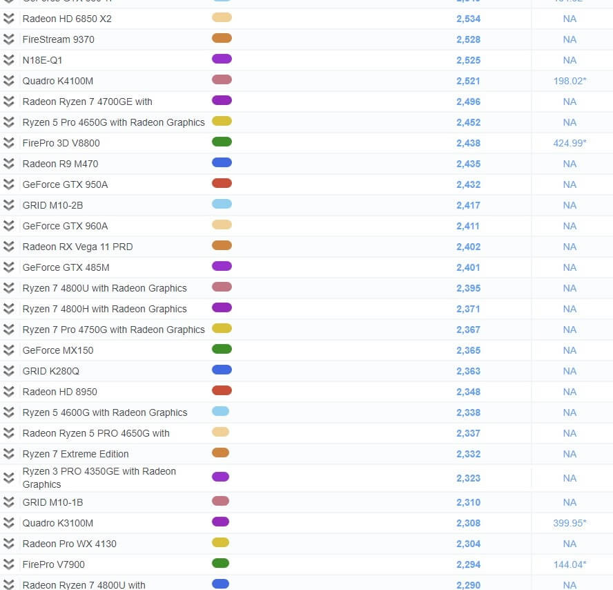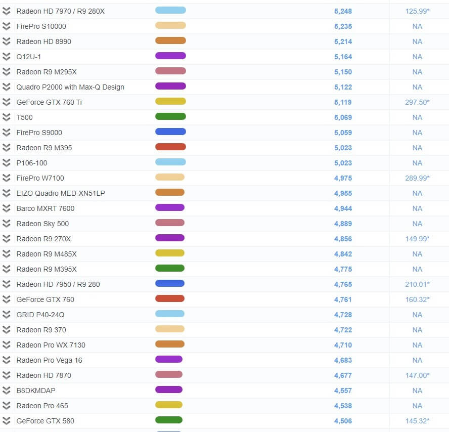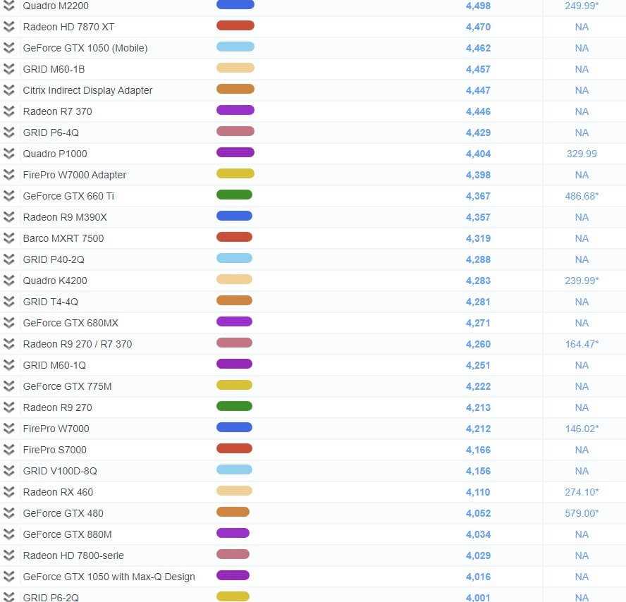 그래픽 카드 성능 순위 비교표