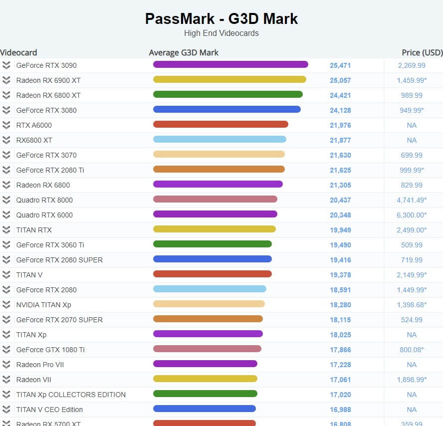 그래픽 카드 성능순위 비교표 2021년 02월 최상위