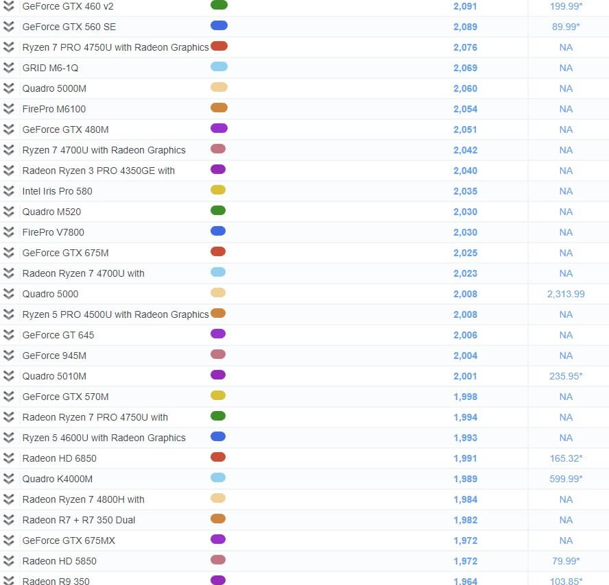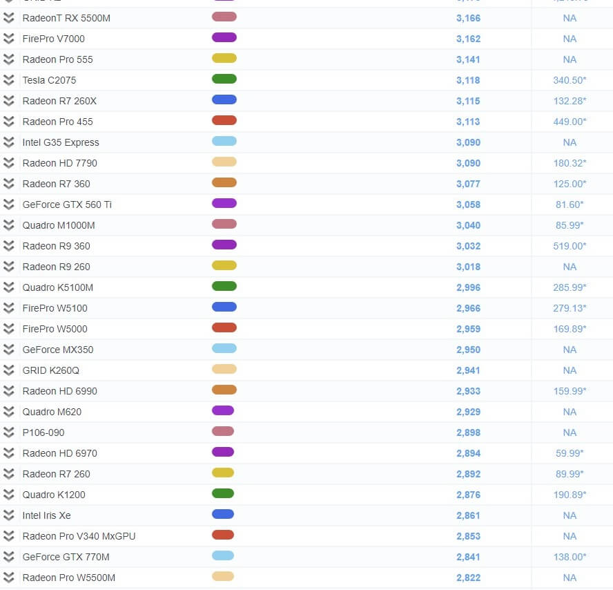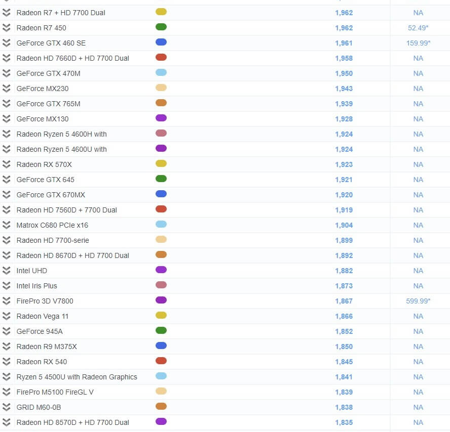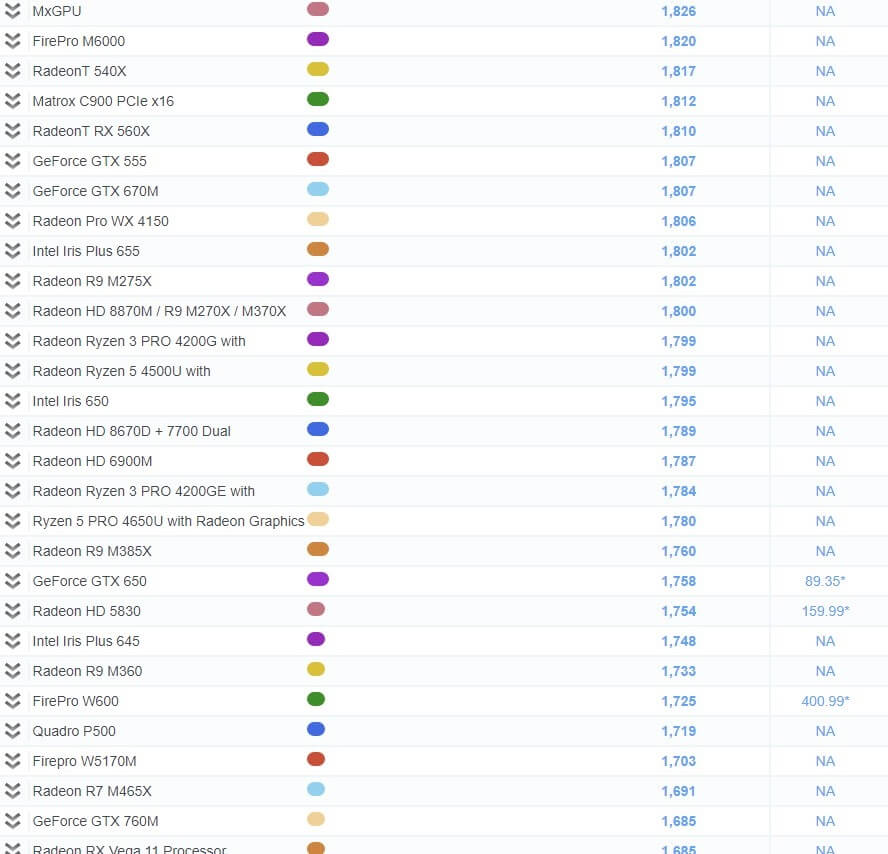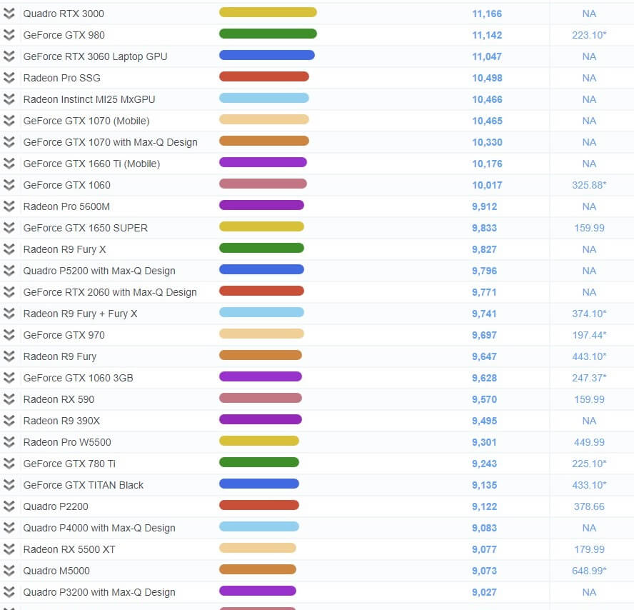 그래픽 카드 성능 순위 비교표