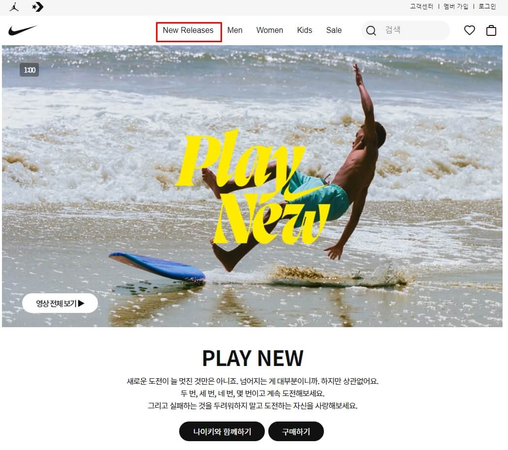 3. 나이키 온라인 스토어 응모방법