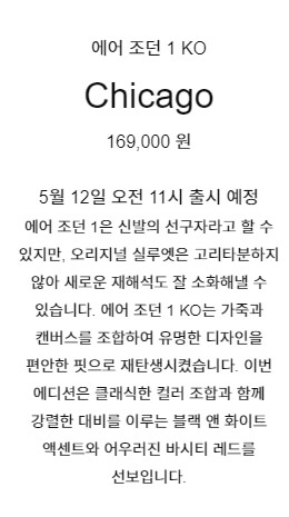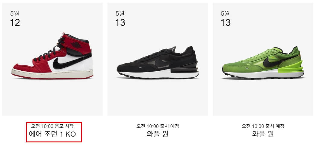 2021년 5월 12일 해당 에어 조던 1KO 제품을 나이키 온라인 스토어에서 추첨을 통해서 제품을 구매할 수 있도록 계획 되어 있습니다. 정해져 있는 시간에 응모가 시작되고 응모가 종료 되는 시간도 정해져 있기 때문에 해당 스케줄을 꼭 확인하세요.