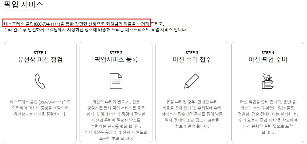네스프레소 커피머신 AS 서비스 대표 전화 번호