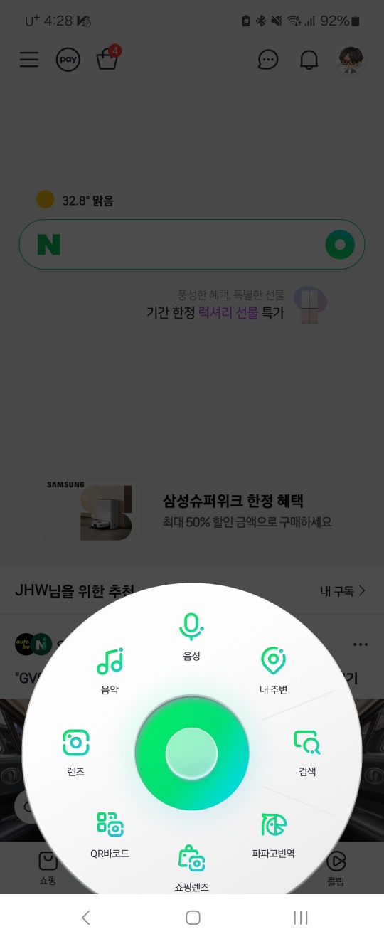 2. 메인 화면 하단 중앙의 그린 색상 동그라미 버튼(그린닷) 터치