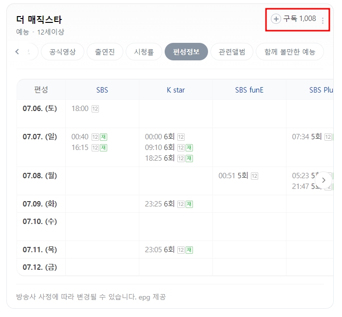 더 매직스타 재방송 편성표!
