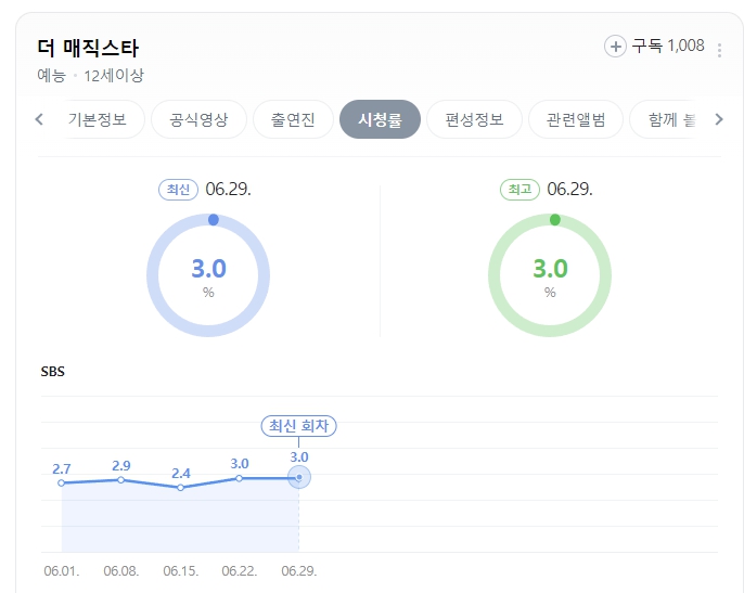 시청률이 날이 갈수도 점점 높아지고 있네요. SBS 에서 3.0 %라면 요즘에도 높은편이라고 할수 있죠! 왜냐하면 대부분 OTT로 시청하기 때문이죠.