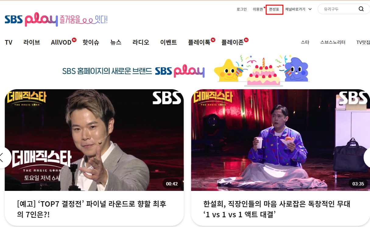 SBS홈페이지의 새로운 브랜드, SBS play! 실시간라이브와 10만여편의 VOD 무료 즐기기