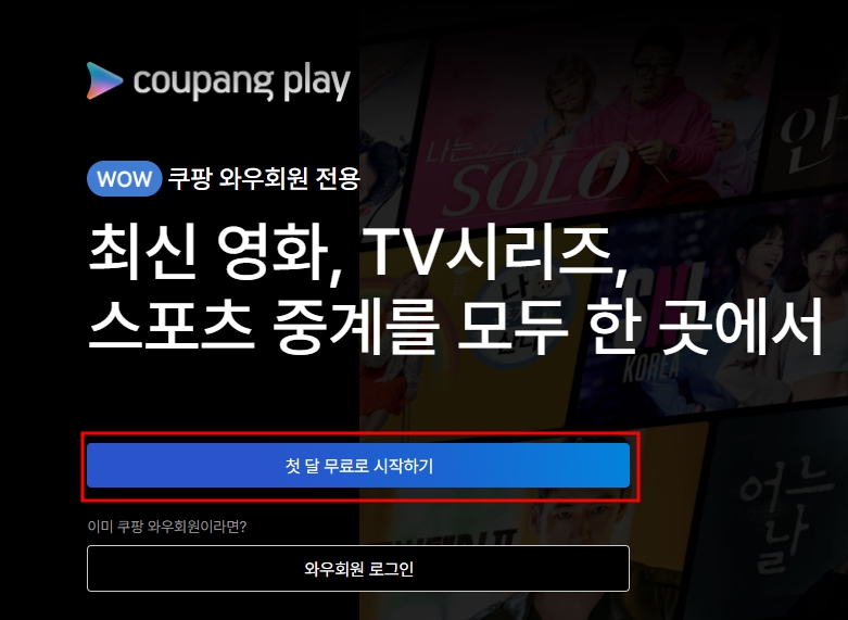 이미 쿠팡 와우회원이라면 100% 바로 무료로 사용할수 있습니다. 하지만, 사용하지 않고 있으시다고요? 걱정마세요! 첫달30일 무료로 사용이 가능하기 때문에, 이용하고 바로 해지하시면 100% 무료로 볼 수 있죠.