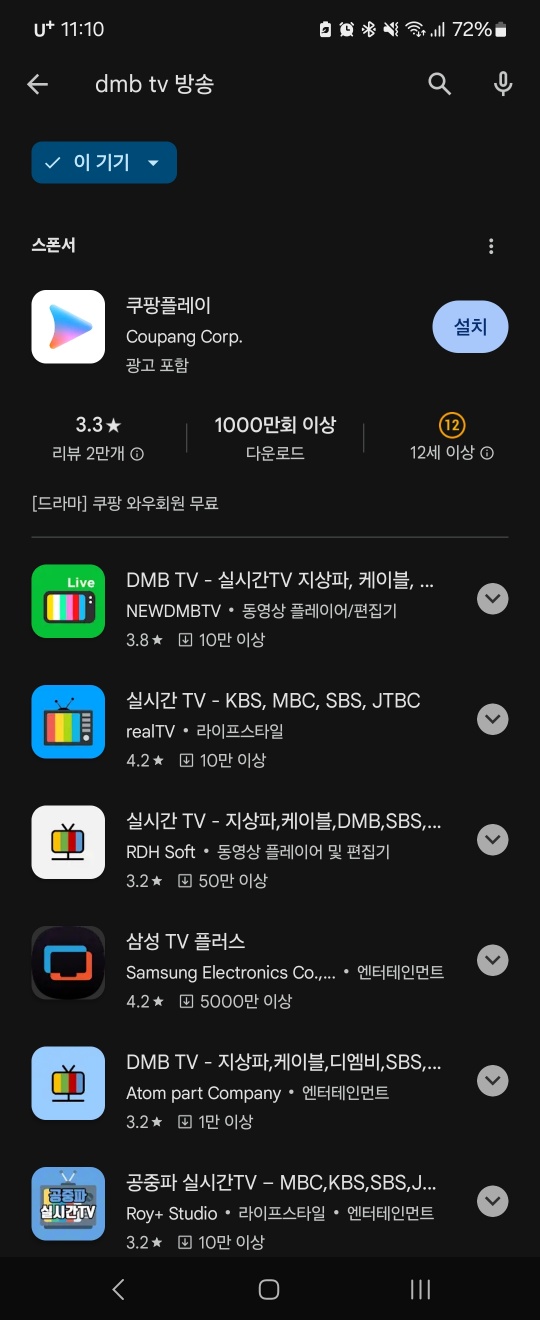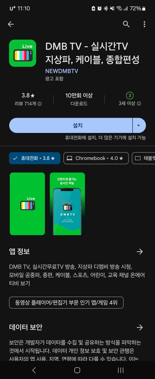 1. DMB TV 방송 어플을 다운로드 해주세요.