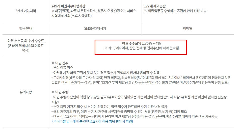 추가적인 여권 발급 비용과 사진을 컴퓨터에 첨부해야하기 때문에 이 부분도 고려하세요.