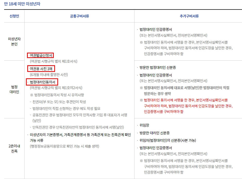 자녀(미성녀자)에 신규 여권 발급 필요한 분들