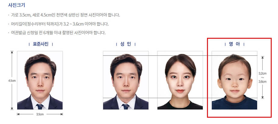 특히, 사진에 경우 규격에 맞지 않으면 여권 발급 신청이 되지 않습니다. 아래 사진 크기, 주요 규격을 다시 한번 확인해보세요.