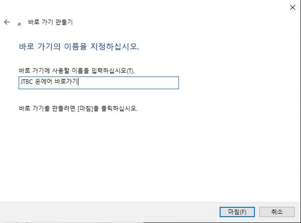 3. 바로 가기를 위한 이름을 지정해주세요.