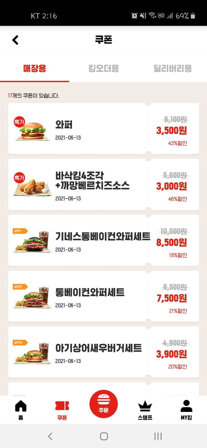 1. 행사명 : 올데이킹 - 버거킹 6월 행사에 포함