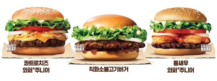 3. 행사제품 : 더블 오리지널 치즈버거, 직화소불고기, 콰트로치즈와퍼주니어, 통새우와퍼주니어, BBQ몬스터, 몬스터베이비 XL