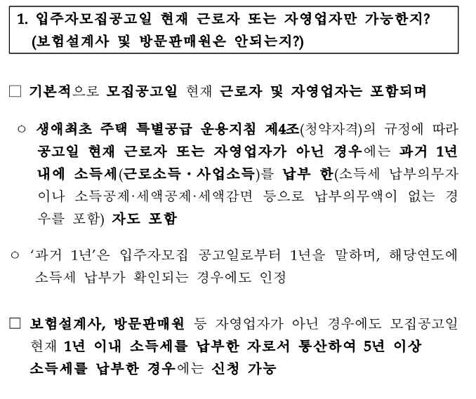 생애 최초 특별 공급에 자격 및 소득 증빙 기준은?