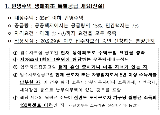 생애 최초 특별 공급 조건 2020년 10월 기준