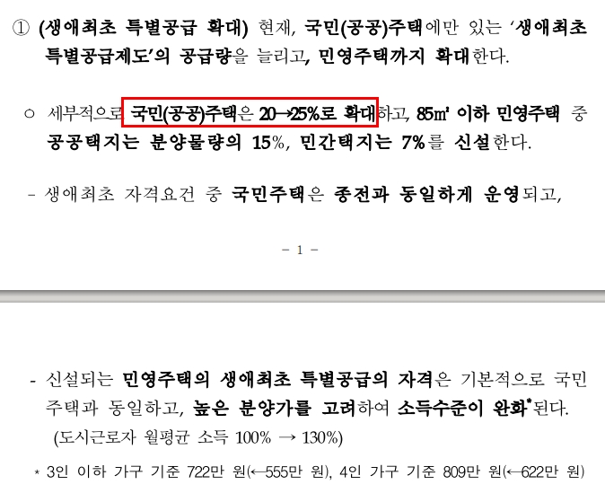 기존에 국민(공공주택) 공급 범위가 20%에서 25프로로 확대 되었습니다. 그리고 확대한 주택 유형은 85m2 형입니다.