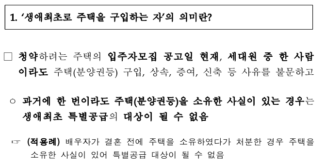 정보에 이런 개정안은 주기적으로 확인하고 생애최초 특별공급 청약을 신청하기 전에 꼭 확인해야하는 중요한 정보라고 생각합니다. 정확한 청약 조건 파악이 기본이라고 할 수 있기 때문입니다.