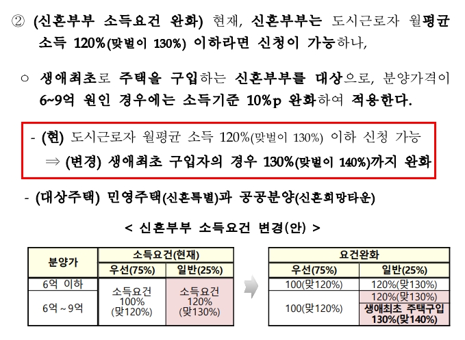 가장 이목이 집중되는 항목은 특별공급 소득기준이라고 할 수 있습니다. 신혼부부에 경우 맞벌이에 소득 기준이 기존에 비해서 확대 되어기 때문입니다. 그리고 해당 소득 기준을 판정하는 기준은 도시 근로자 월평균 소득을 기준으로 합니다.