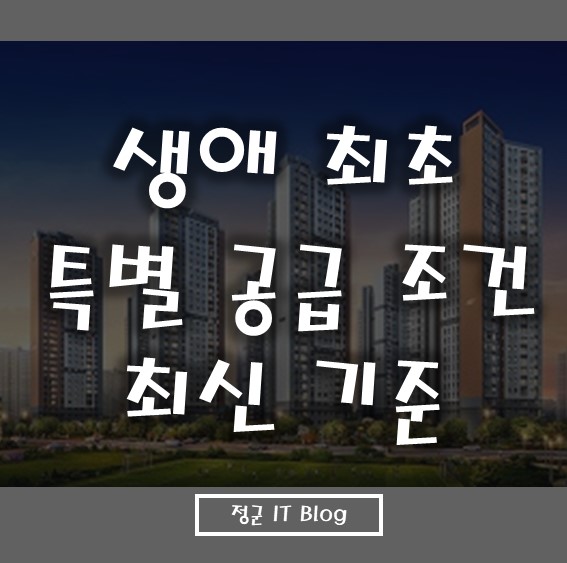 안녕하세요. 최근에 부동산 정책 변경으로 집을 구매하기 점점 더 어려워지는 것 같습니다. 이런 어려운 상황에서 제일 중요한 부분은 생애 최초 특별 공급 정책에 대한 정확한 조건을 파악하고 내가 꼭 거주할 아파트를 공략적으로 신청하는 것이 아닐까 싶습니다. 그래서 오늘은 최근에 변경된 아파트 생애 최초 특별 공급 조건에 대해서 국토교통부 홈페이지에서 공지한 내용 기준을 살펴보겠습니다.