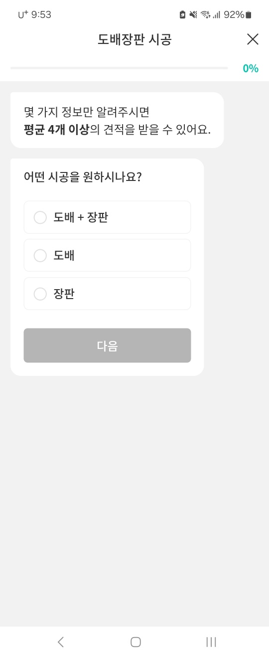 희망하는 견적 항목을 선택해주세요. 도배장판 시공