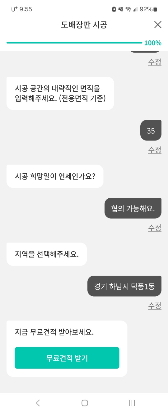 주요사항을 모두 입력하셨다면, 무료 견적 받기를 신청하시면 됩니다.
