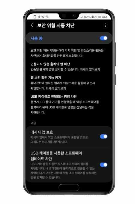 3. 보안 위험 자동 차단 기능을 활성화해 주세요.