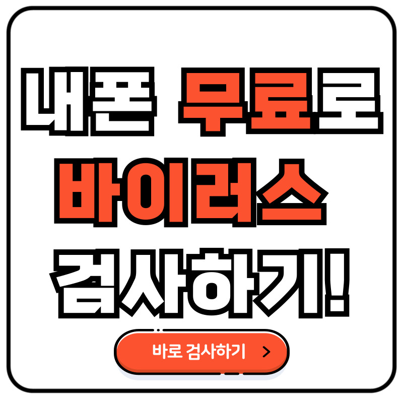 혹시 모르는 번호로 온 문자 링크 클릭 하셨나요? 내 폰 안전한가? 바이러스 감염되지 않았나? 걱정되신다면, 지금 무료로 핸드폰에서 제공하는 바이러스 검사를 진행해 보세요. 주기적으로 체크해 주시는 게 개인정보보호와 핸드폰 안전에 도움이 됩니다.
