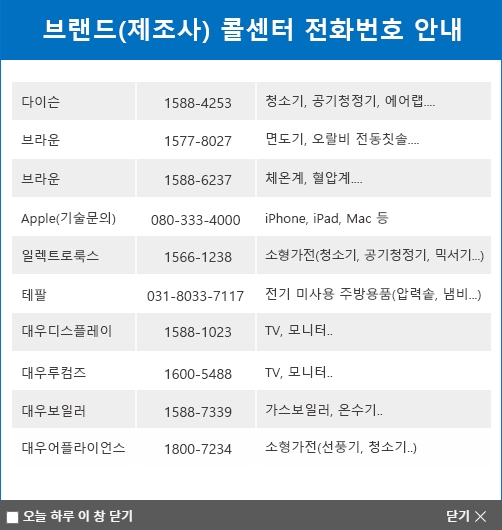 위니아 에이드  AS 고객센터 대표 전화 번호