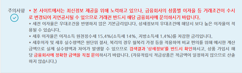추가적으로 내가 원하는 은행을 선택하여 이율이 높은 곳과 내가 실수령할 수 있는 금액을 비교하여 확인도 할 수 있습니다. 금리가 동일하더라도 단리 복리에 따라서 수령액이 달라질 수 있습니다.