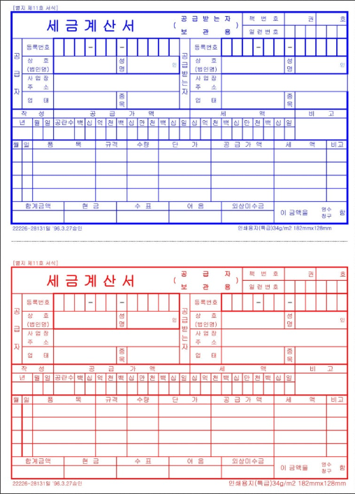 종이세금계산서 양식은 여전히 실무에서 필요한 경우가 많습니다.