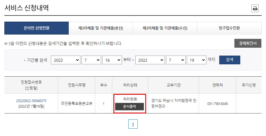 온라인 신청 민원 결과 확인하세요.