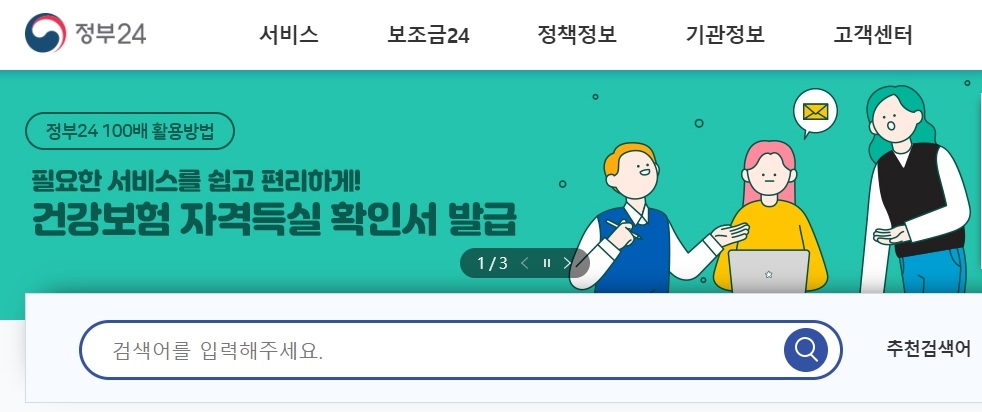 정부 24 홈페이지에 접속해주세요.