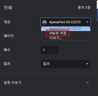 하지만, PDF 저장해서 기관에 파일 전송이나 향후 사용할 용도라면 해당 방법을 선택하시면 됩니다.